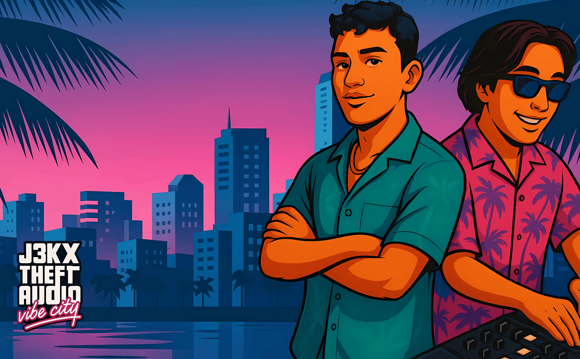 J3KX is a brotherhood DJ and producer duo inspired by the timeless nightlife of Vice City’s Malibu Club—where every night is alive with rhythm, color, and freedom.